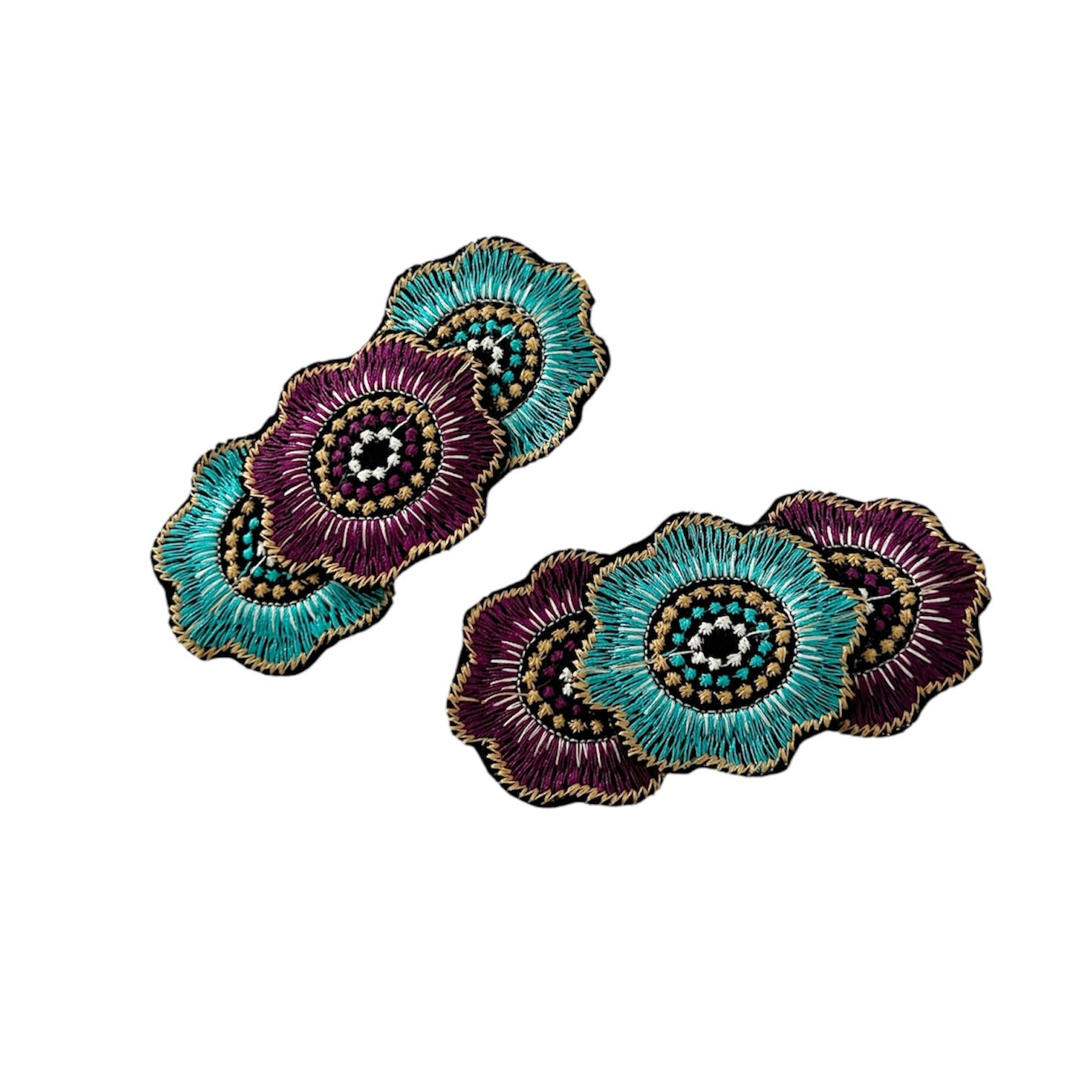 Blue and Purple Embroidered Flowers Alligator Clip