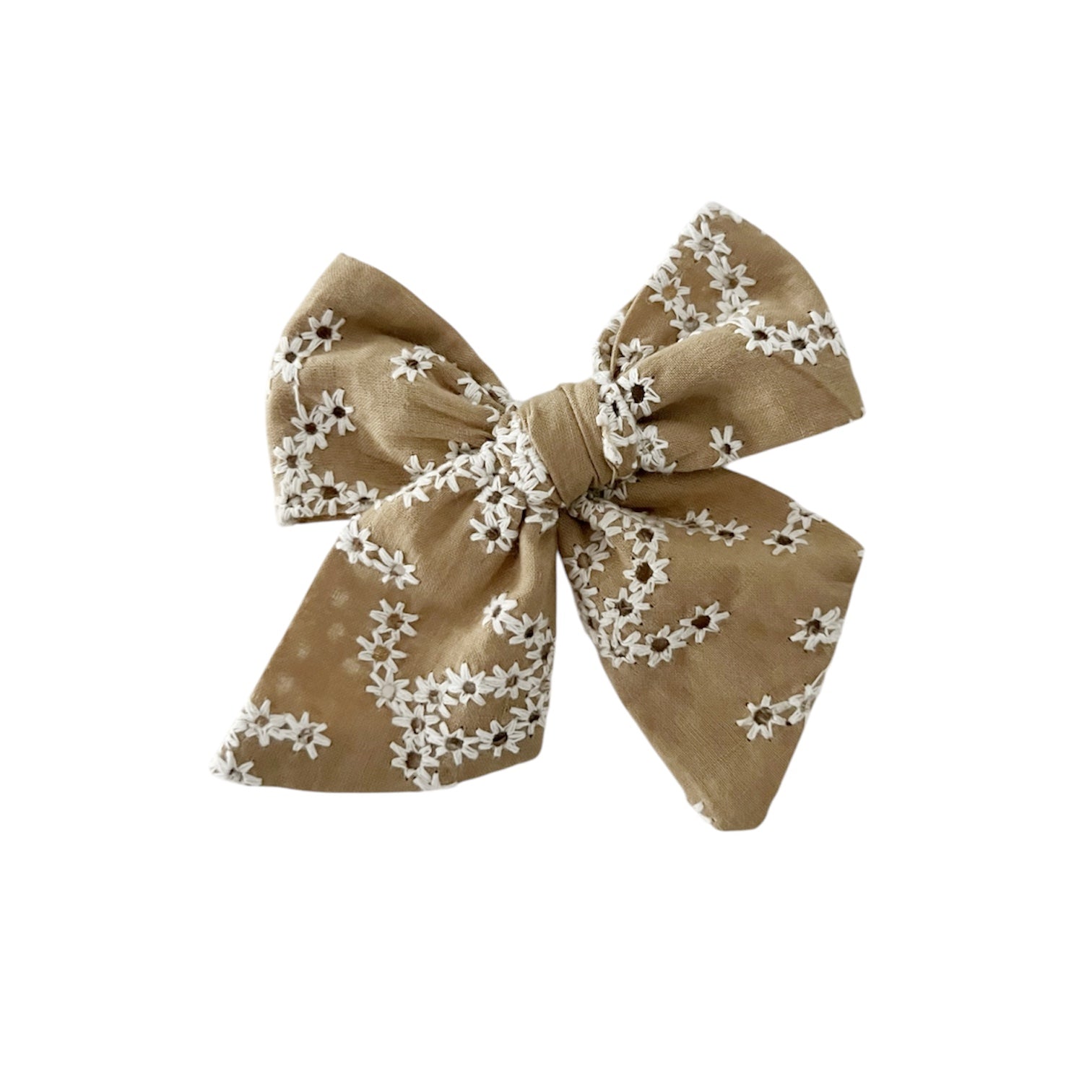 Tan Embroidered Eyelet Jasmine Bow